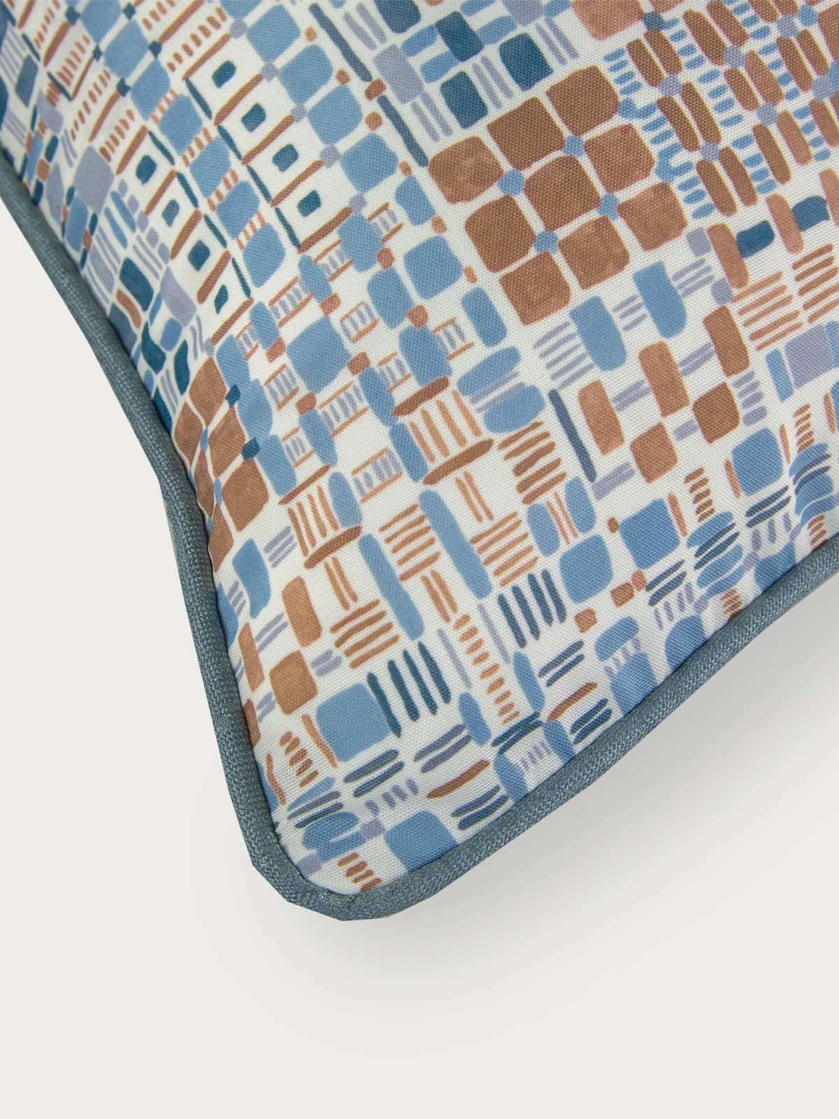 Geometric block print pattern with contrasting welt
