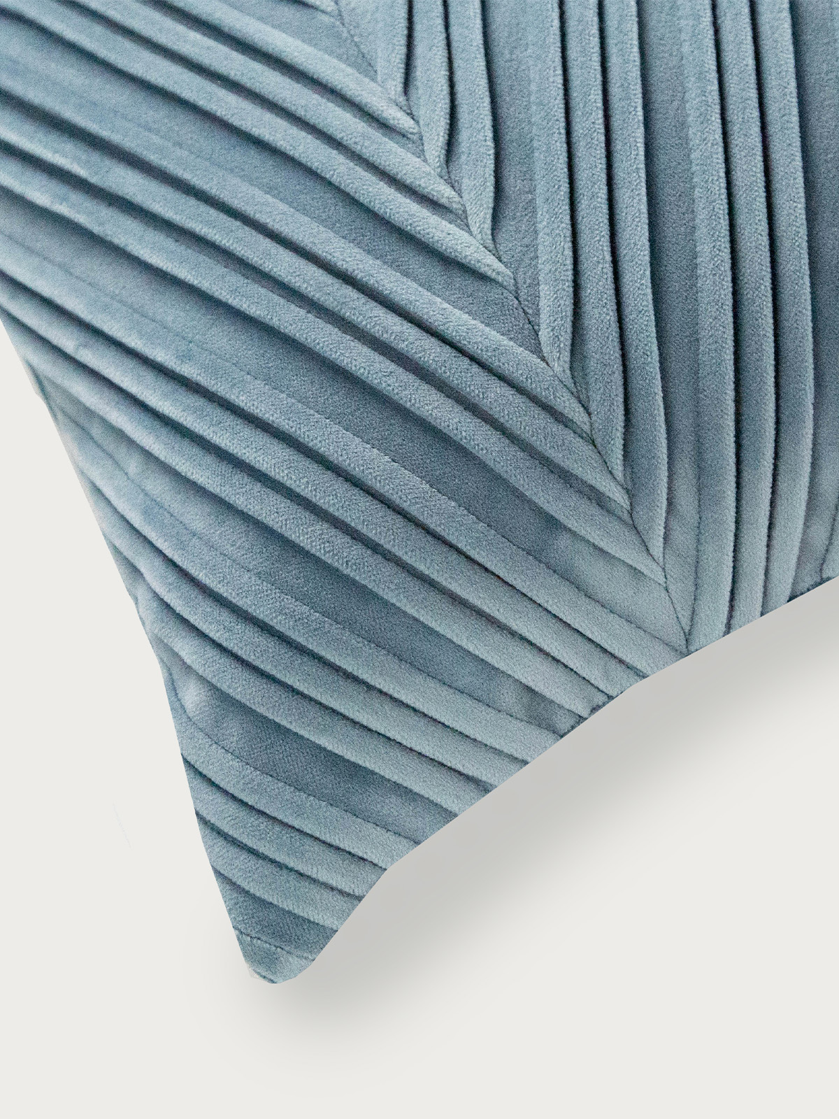 Technique: Pleated Velvet Face / Solid Velvet Back / Knife Edge Finish on All Sides / Concealed Zipper