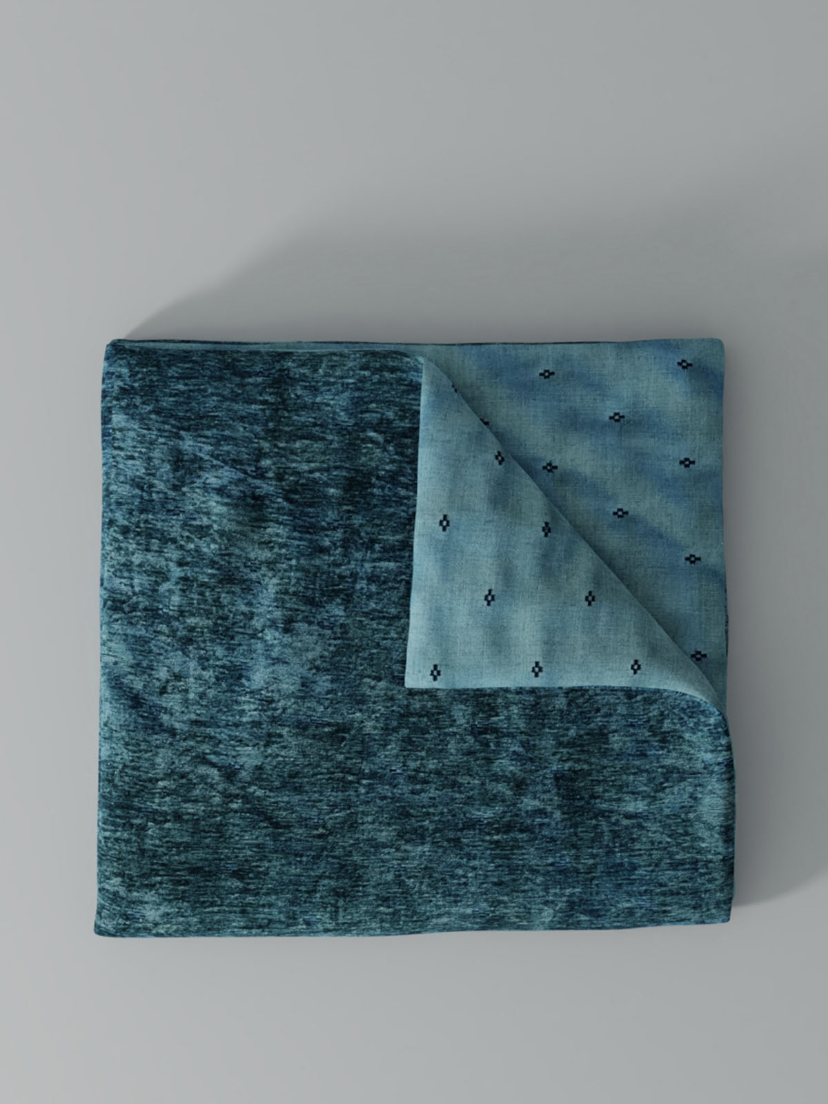 Dot pattern is embroidered and quilted through Chenille Face and Sensu Back