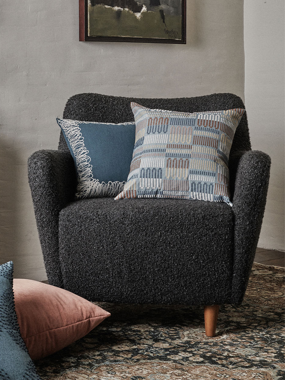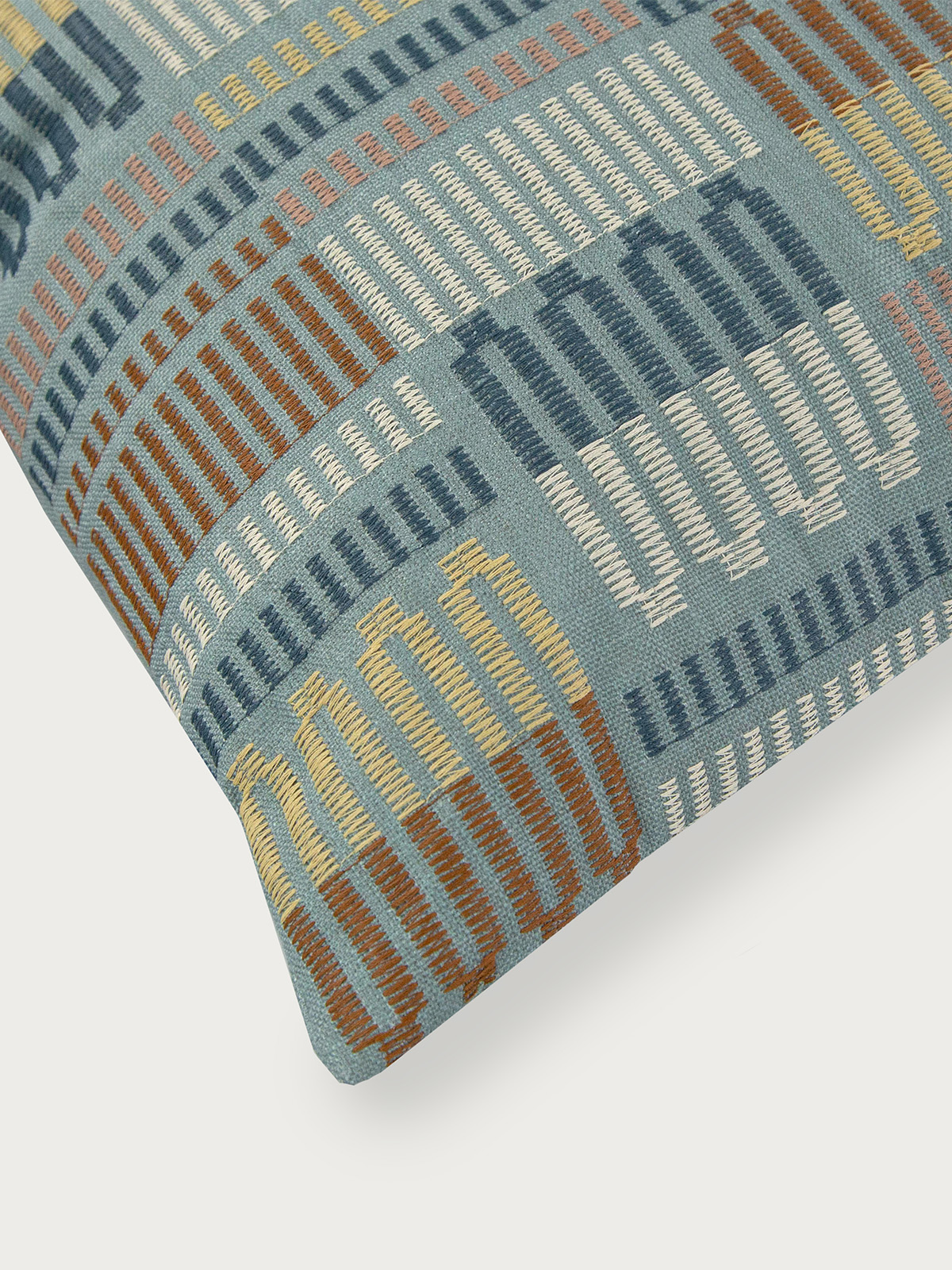 Technique: Embroidered Face / Solid Back / Knife Edge Finish / Concealed Zipper