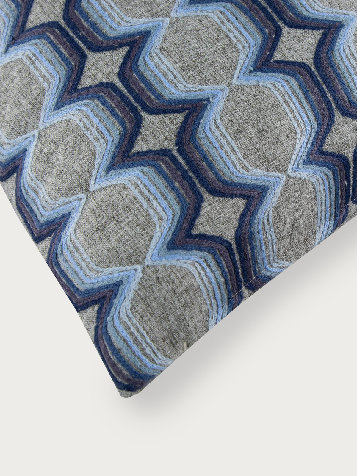 Technique: Embroidered Face / Solid Back / Knife Edge Finish / Concealed Zipper