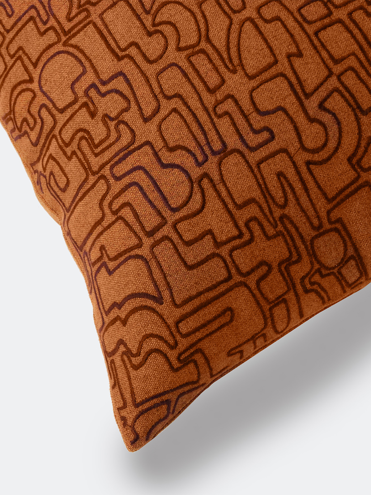 Intricate embroidered patterning covers the face of this pillow
