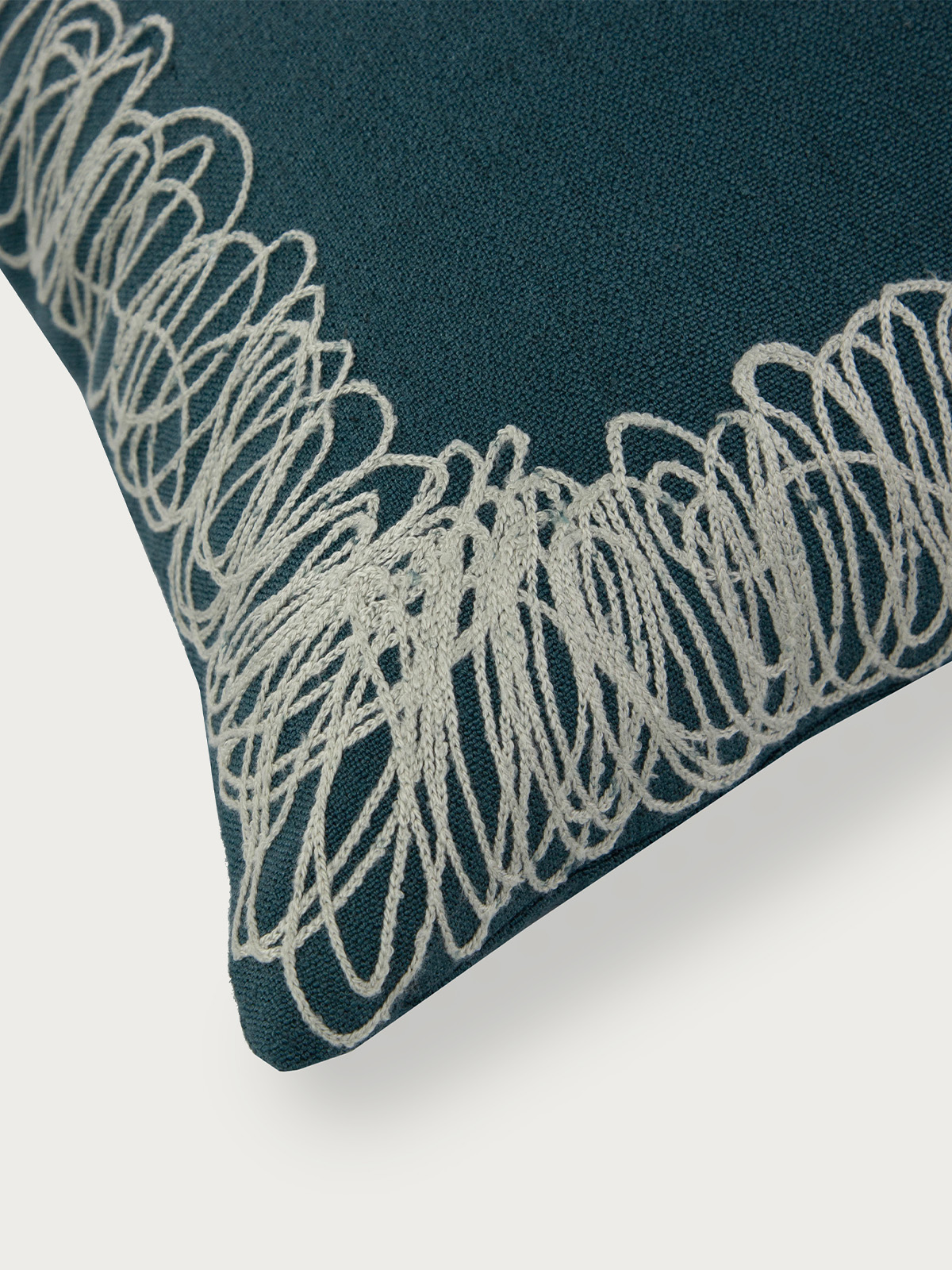 Technique: Embroidered Face / Solid Back / Knife Edge Finish / Concealed Zipper